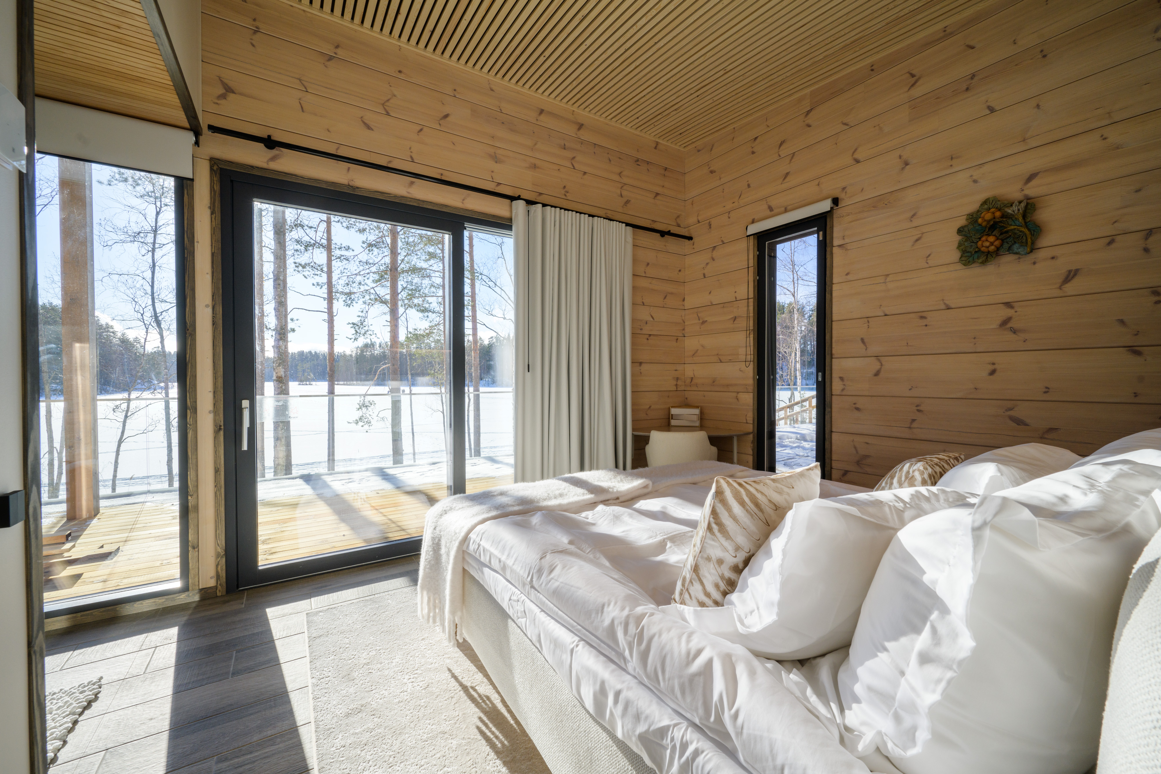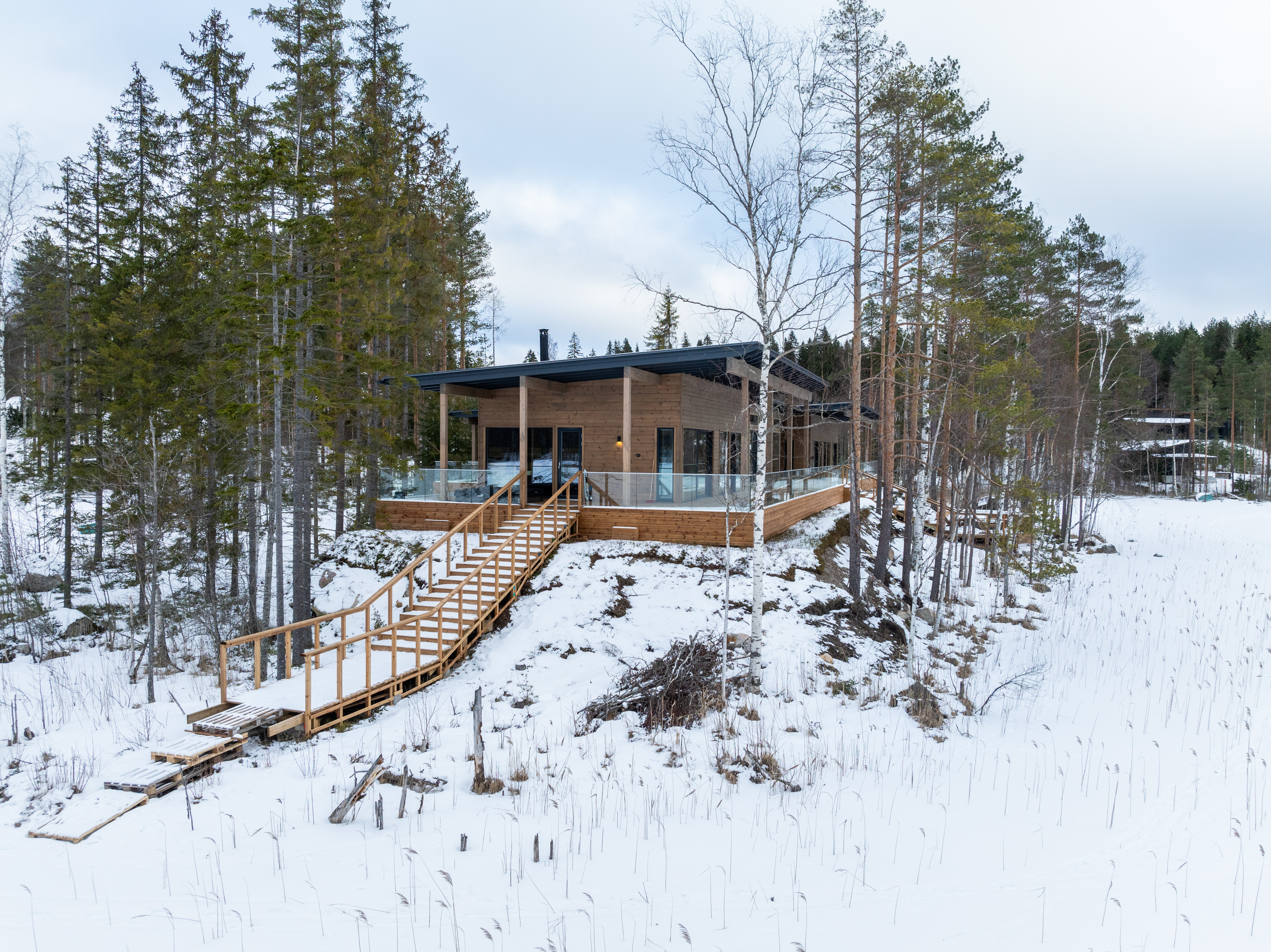 Huvilassa voit nauttia ylellisestä asumisesta keskellä puhdasta suomalaista luontoa. Se tarjoaa 3 tilavaa makuuhuonetta omilla kylpyhuoneilla, tyylikkään oleskelutilan ja joustavat makuupaikat jopa 15 vieraalle.
