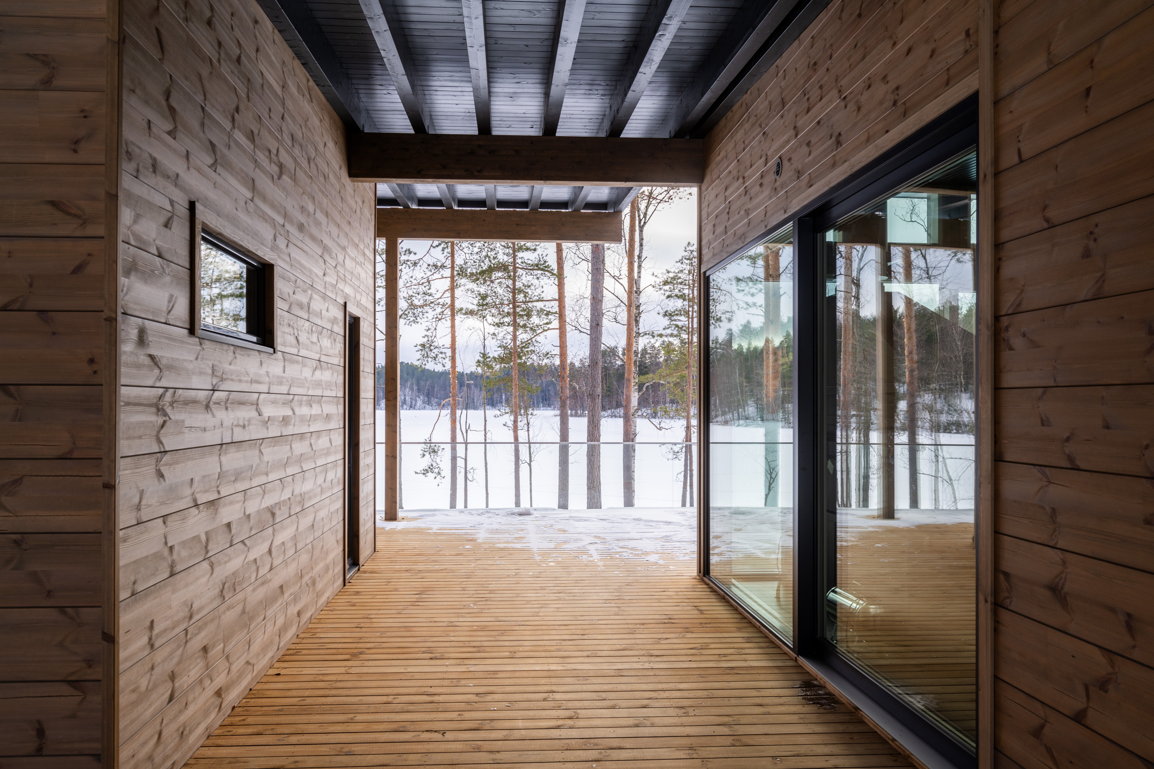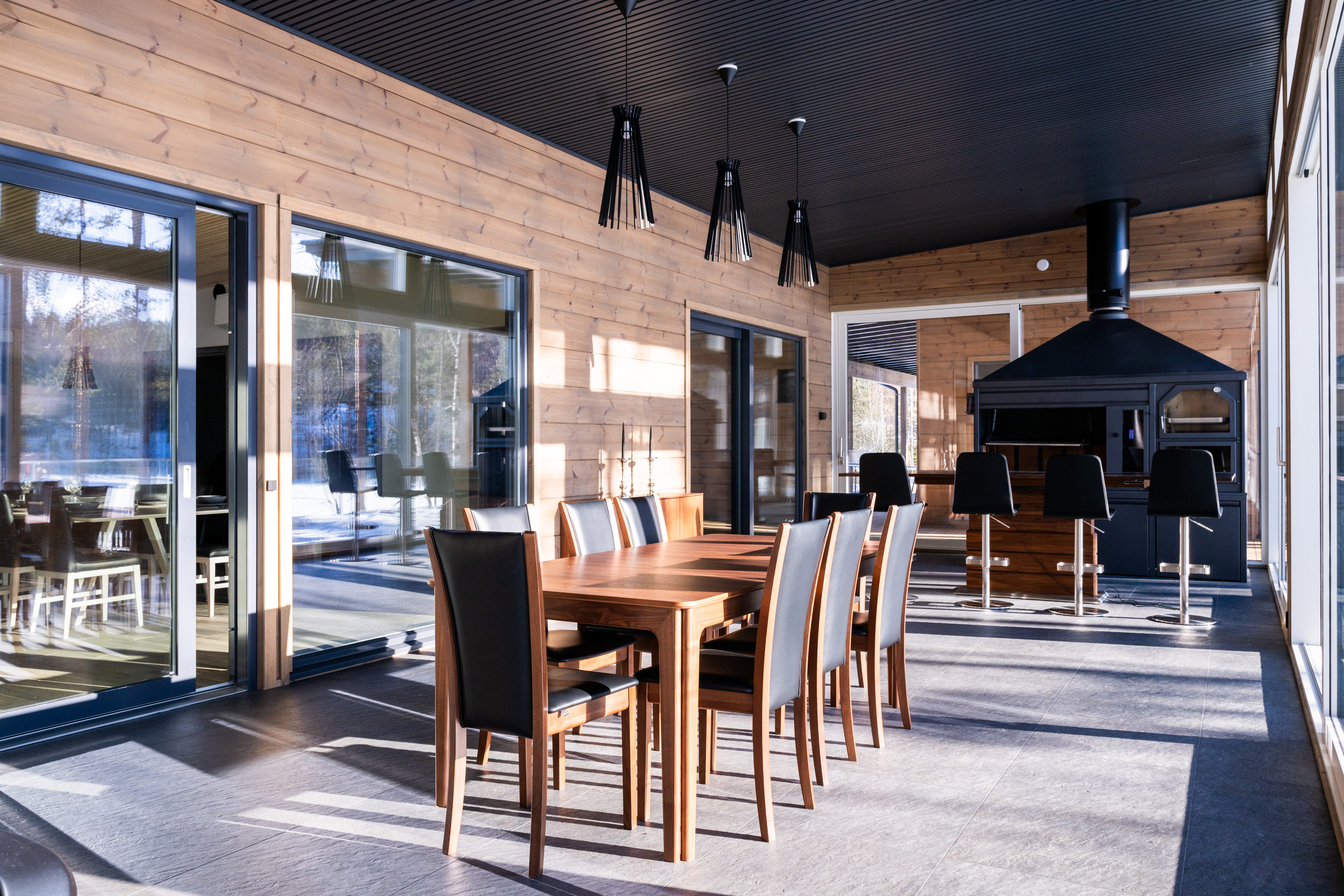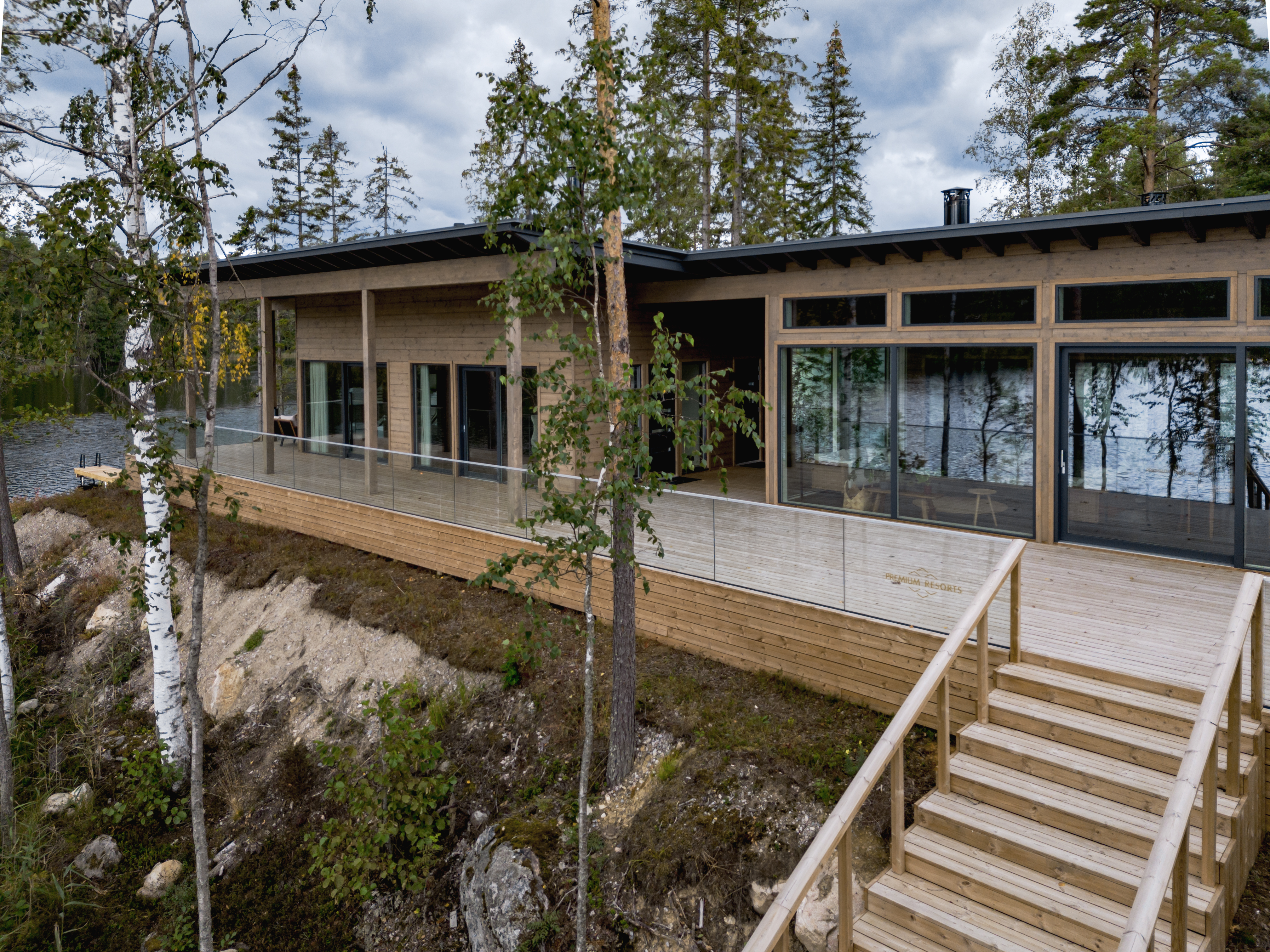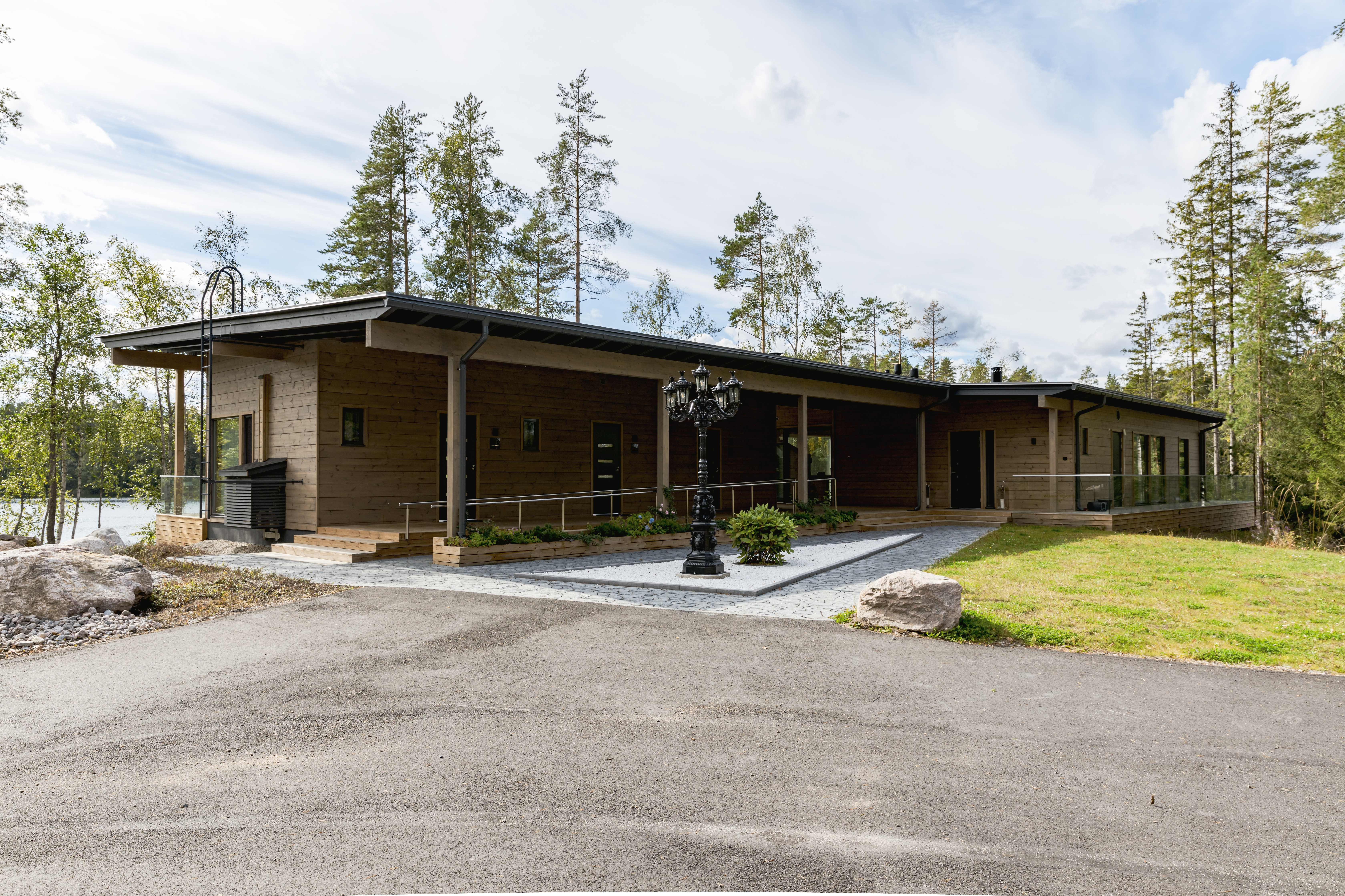 - Ulkotilat: Suuri terassi, poreamme, järvenrantayhteys, argentiinalainen grilli