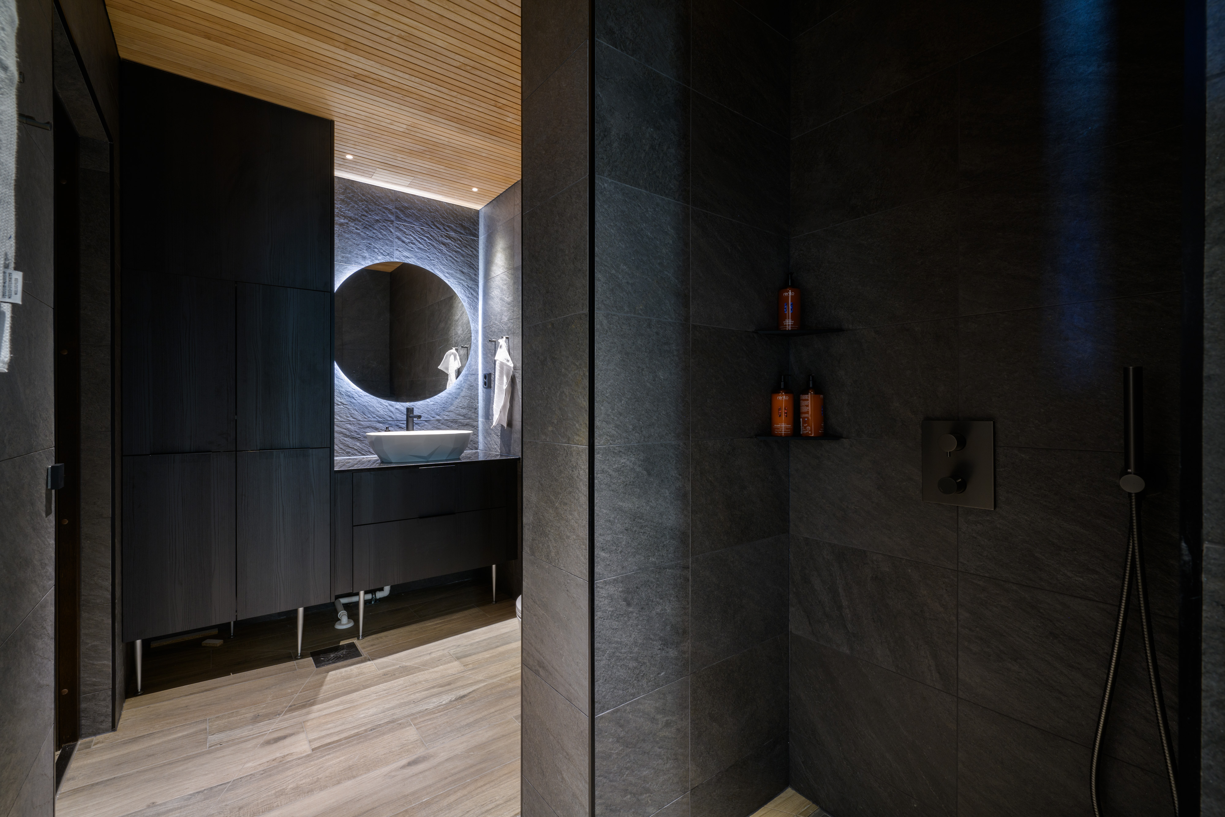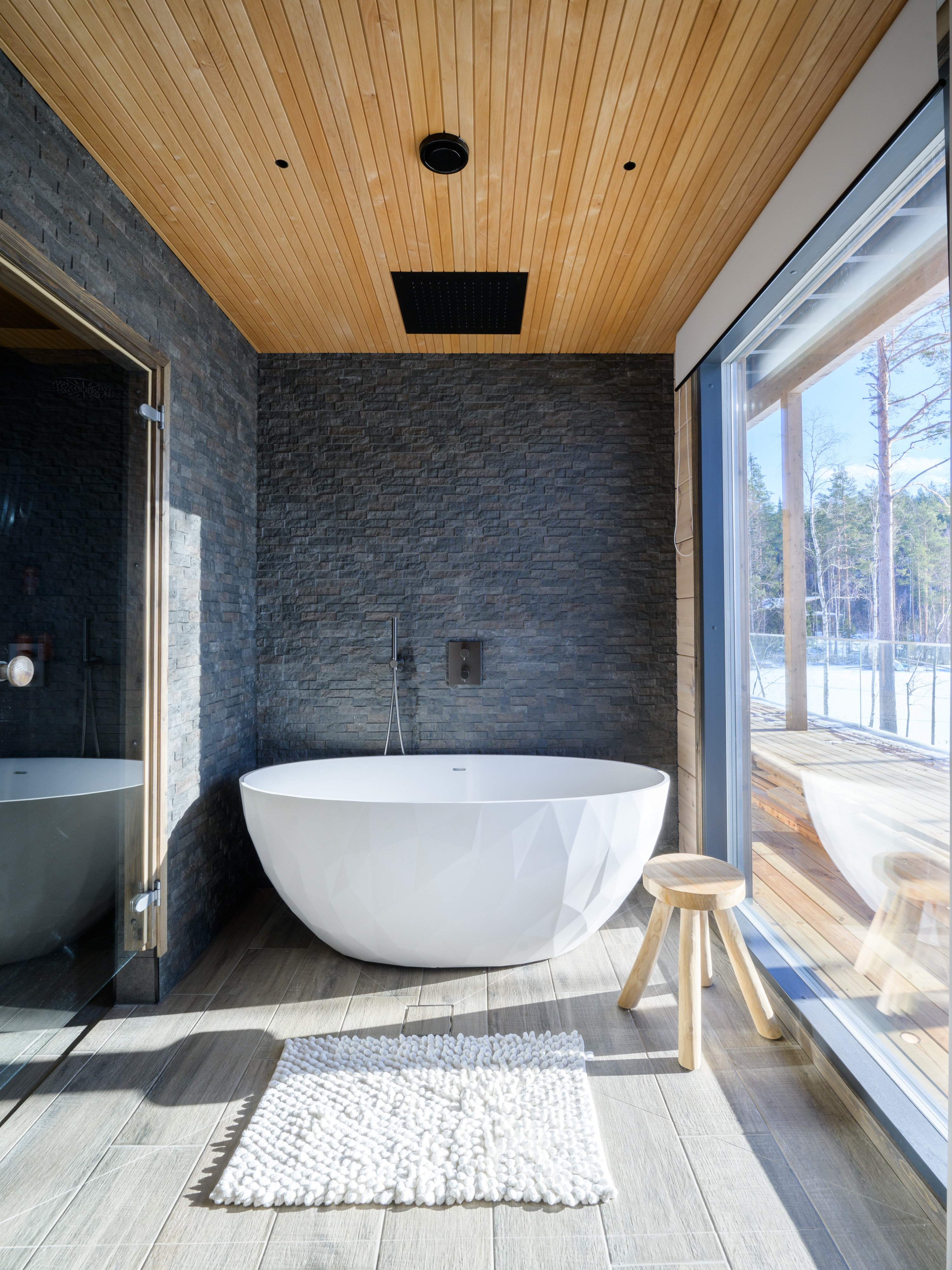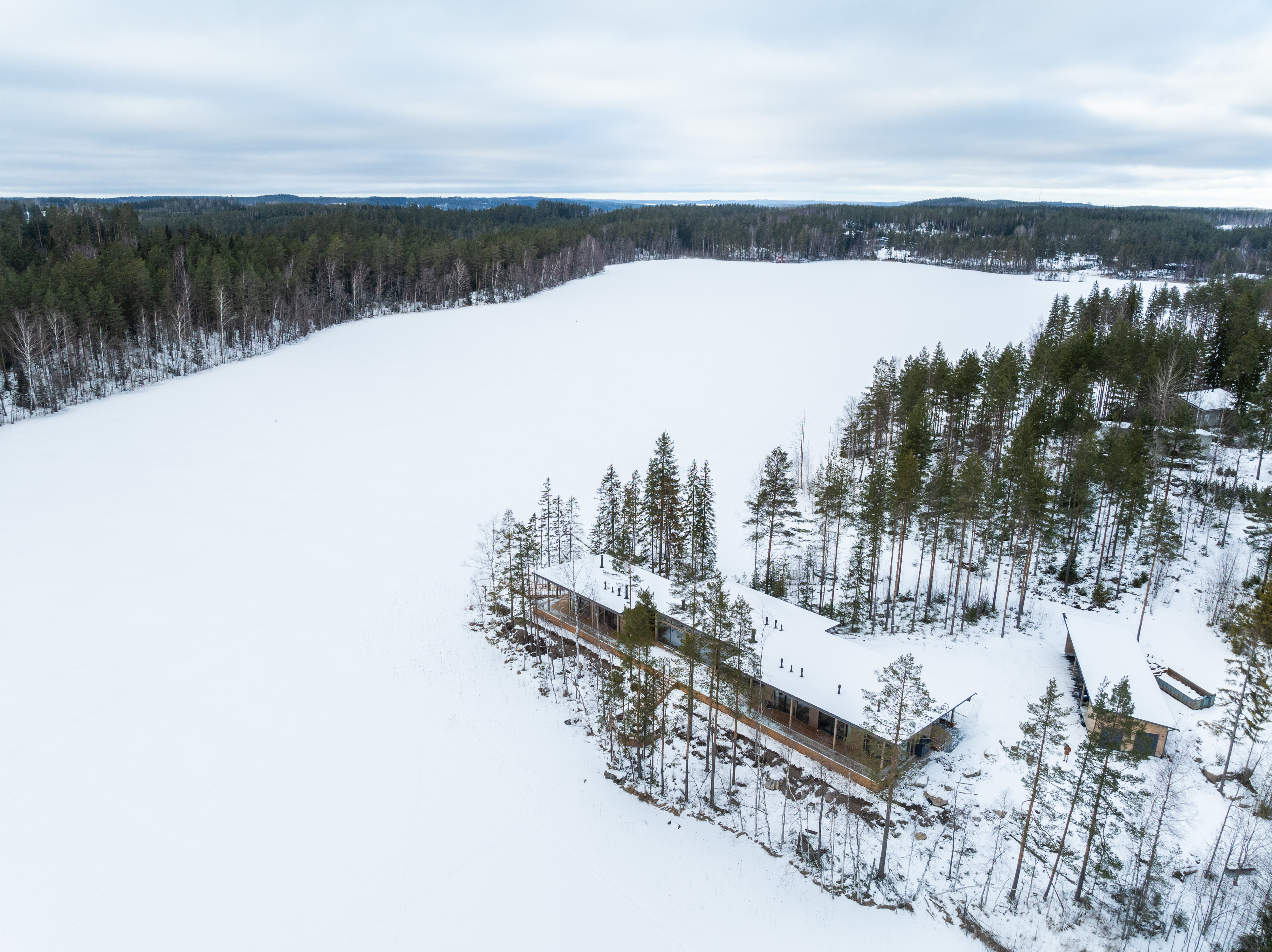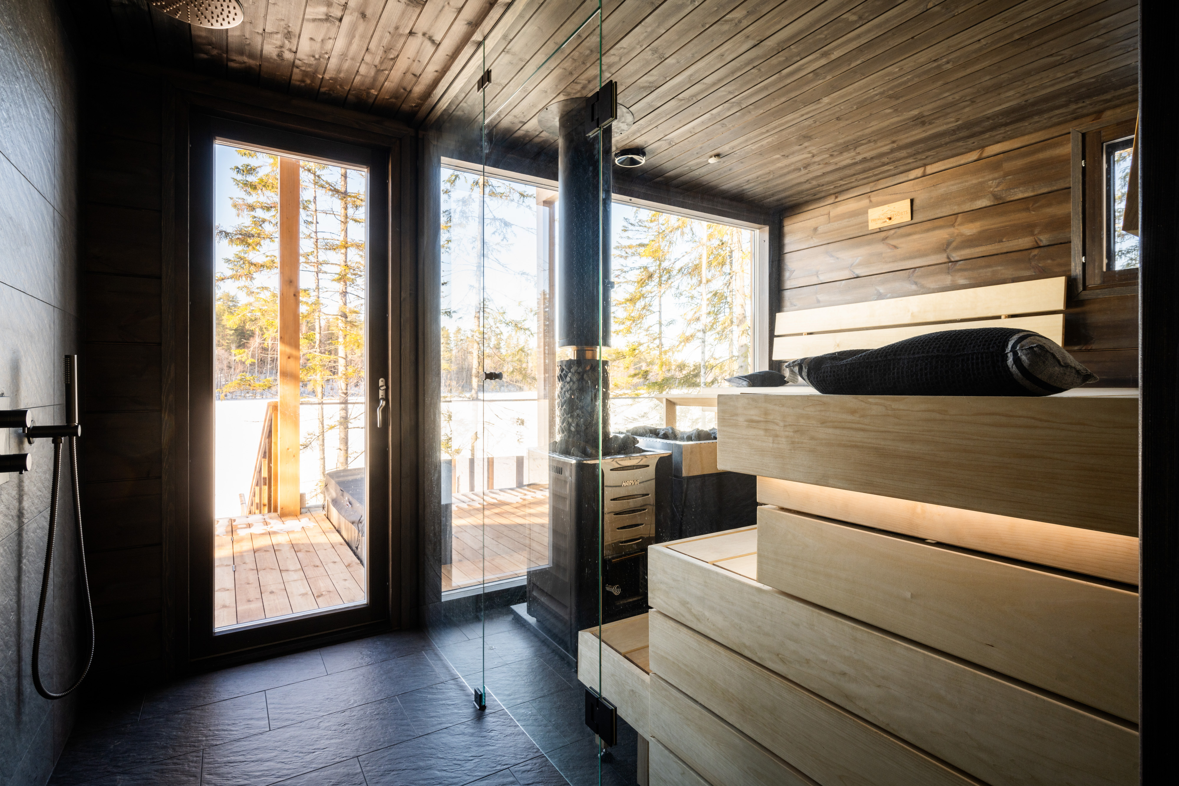 - Ulkotilat: Suuri terassi, poreamme, järvenrantayhteys, argentiinalainen grilli