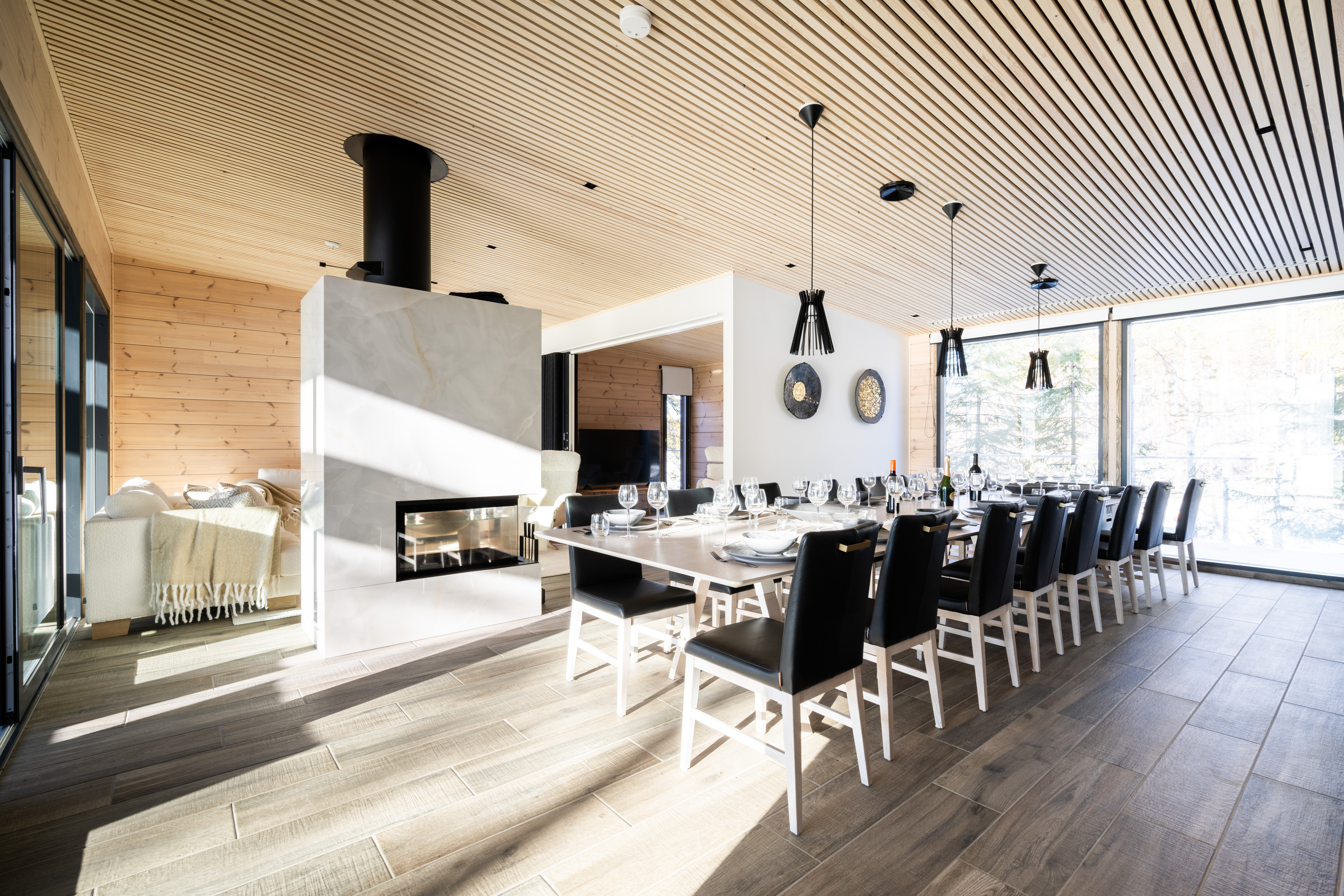 Nauti täysin varustellusta keittiöstä, jossa on huippuluokan kodinkoneet, sekä tilavasta ruokailualueesta, joka sopii täydellisesti yhdessäoloon. Tunnelmallinen olohuone takkoineen tekee viileistä illoista entistä viihtyisämpiä.